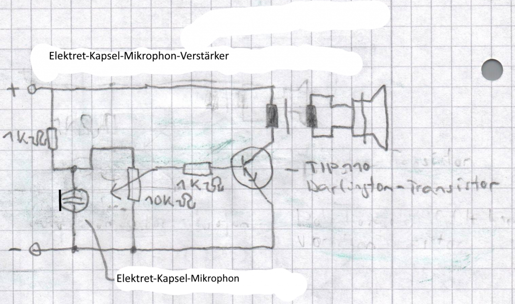 Elektret-Kapsel-Mikrofon an Verstärker: