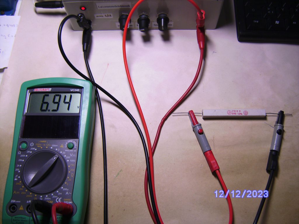 zugeführte Energie bei 5 sekündiger Durchfließung = U * I * t = 7V * 1A * 5sec = 35 Joule